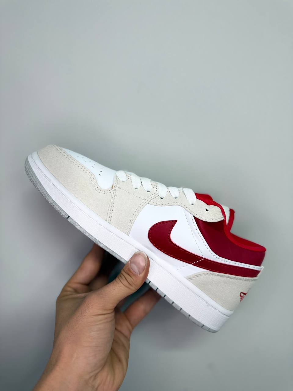 کتونی ساقدار نایک ایر جردن وان سایز ۴۰ تا ۴۵ قرمز کرم‌ طوسی Nike Air 1 jordan