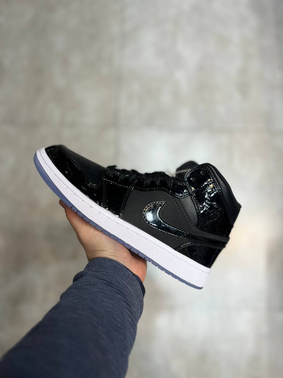 کتونی نایک ایر جردن وان سایز ۴۰ تا ۴۵ طوسی سفید سرمه ای Nike Air 1 jordan