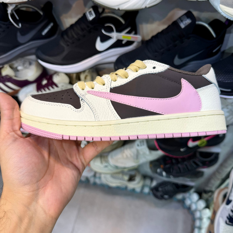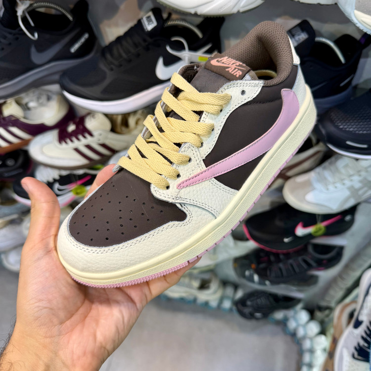 کتونی رانینگ نایک جردن تراویس اسکات قهوه ای صورتی سایز ۳۷ تا ۴۵ Nike Air 1 jordan